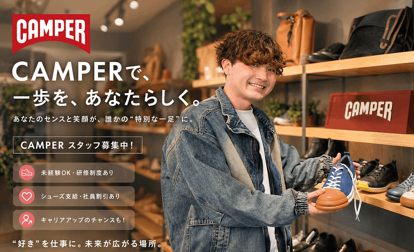 【正社員募集】販売経験者優遇|スキルを活かして活躍|CAMPER(カンペール)